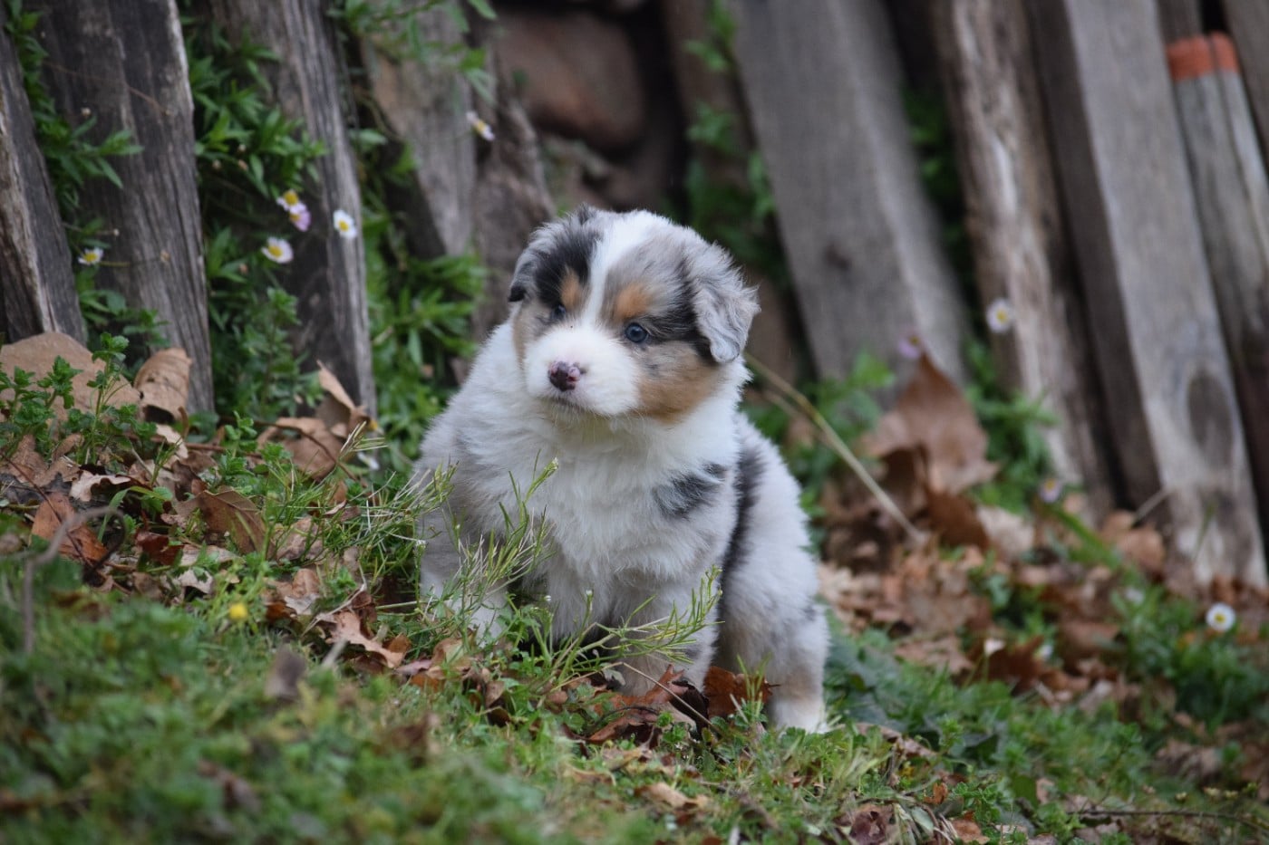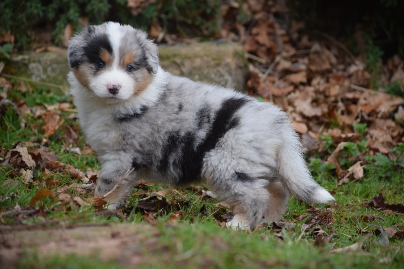 BLEU MERLE QUEUE LONGUE - UNIQUEMENT POUR COMPAGNIE - CASTRATION OBLIGATOIRE - TÊTE DEMIE BLANCHE